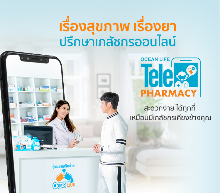 บริการปรึกษาเภสัชกรออนไลน์ จาก OCEAN LIFE ไทยสมุทร ให้คุณออนไลน์ปรึกษาเภสัชกร สะดวกง่ายได้ทุกที่ สามารถเข้าถึงคำแนะนำทุกเรื่องเกี่ยวกับยาและ ดูแลสุขภาพเบื้องต้น โดยใช้สิทธิ์ผ่าน OCEAN CLUB APPLICATION
